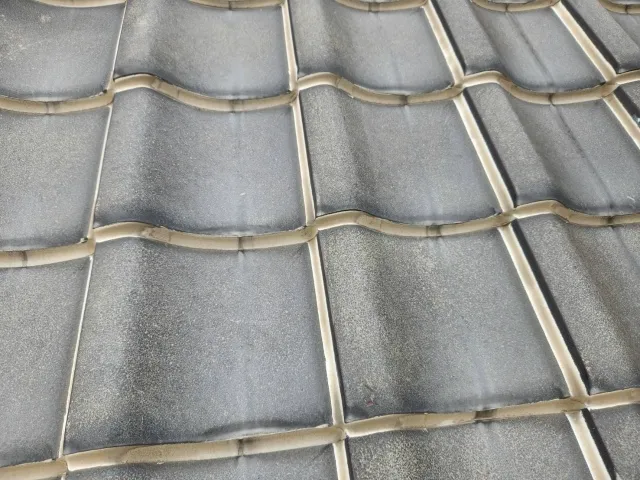 こちらの写真が、ラバーロックで屋根瓦を埋めてしまっている屋根の写真