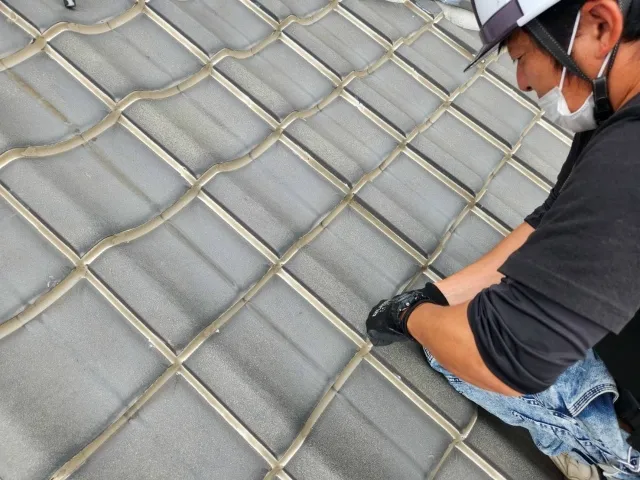 瓦と瓦の間に生じる微細な隙間をコーキングする(埋める作業をする)ことで、雨水の侵入を防ぐことを目的としていますが