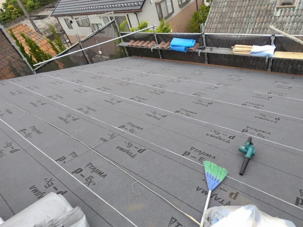 防水シートは、瓦の下に敷くことで、雨水の侵入を防ぎ、屋根材を保護する役割があります。