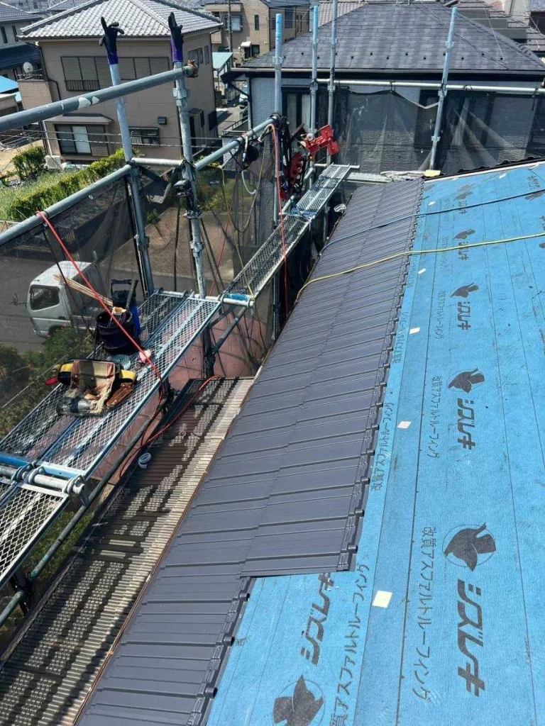 その後、防水シートを敷設し、瓦を丁寧に取り付けます。