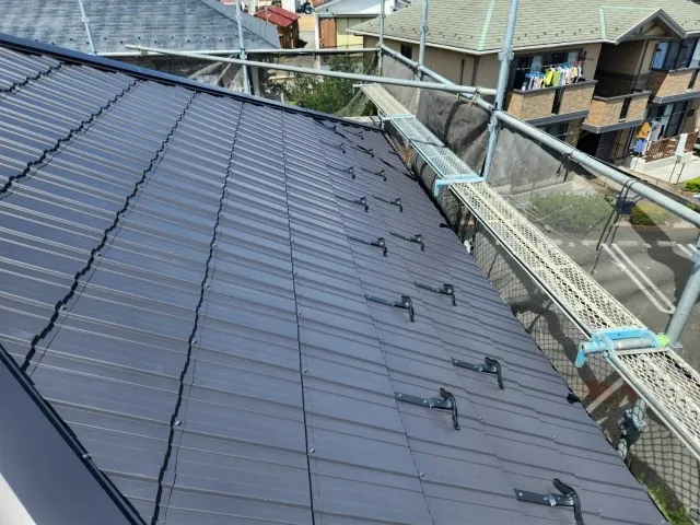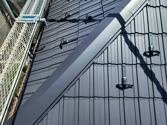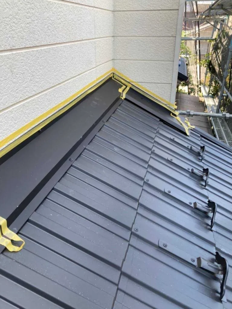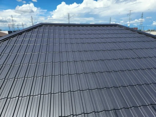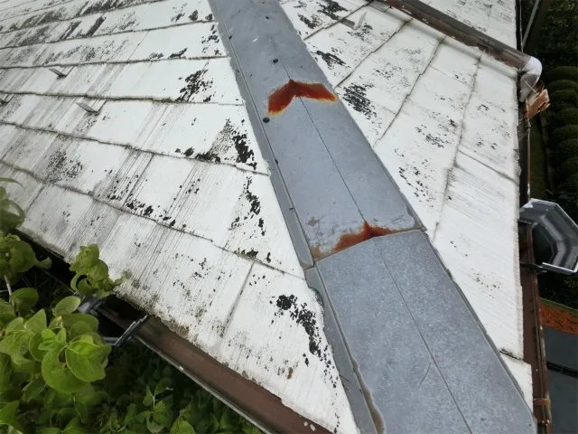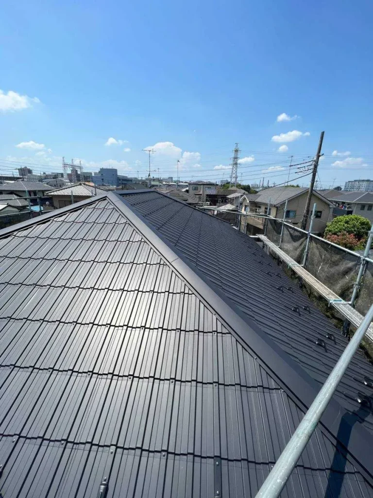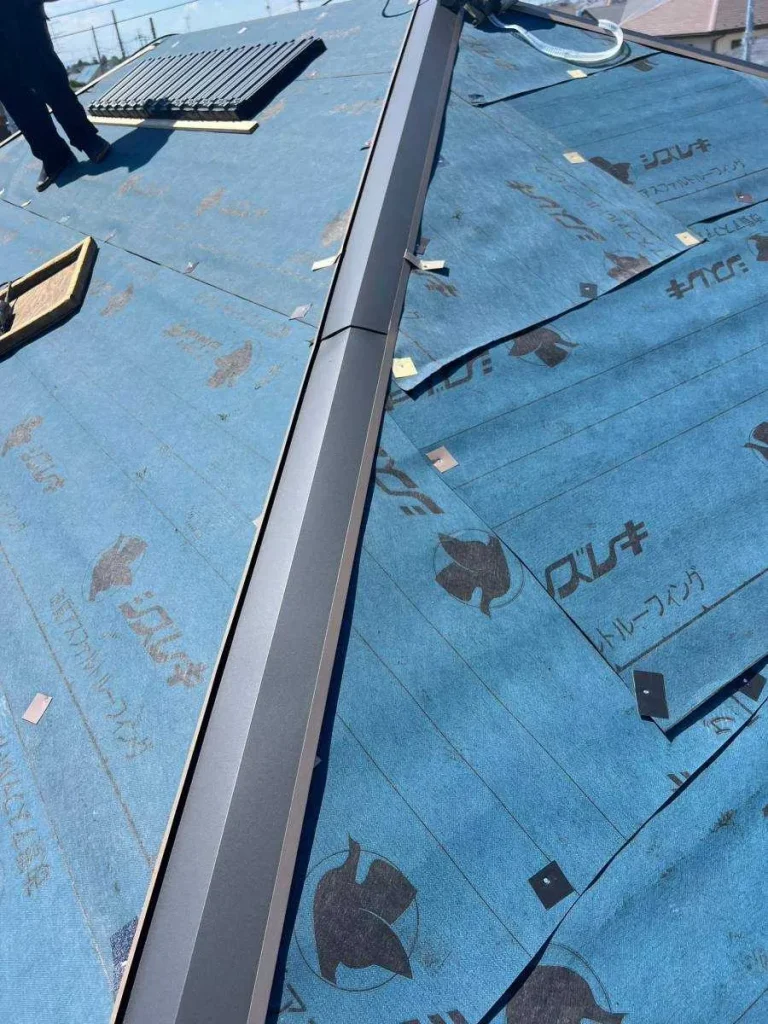 屋根の劣化、棟板金の破損があり、カバー工法で検討されたためレクトルーフを提案。
