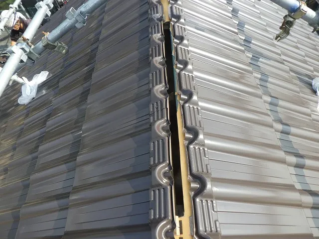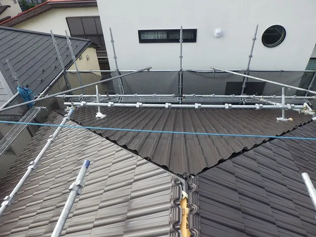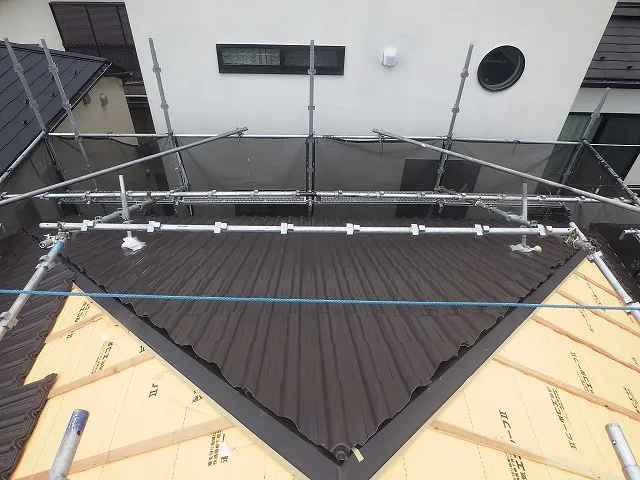 屋根カバー工法でマックス瓦へ葺き替え工事を行いました。