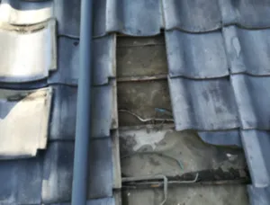 最初は既存の瓦屋根材を一旦撤去し、破損した瓦を取り除く作業です。