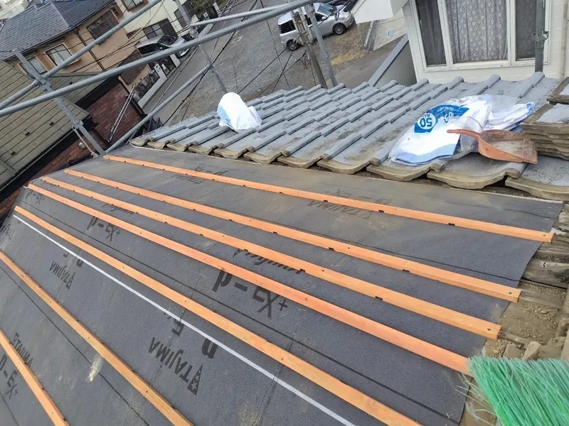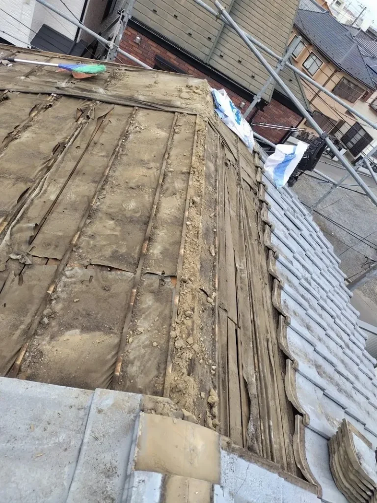 屋根が雨漏りしていたため、屋根葺き直し工事を行いました。
