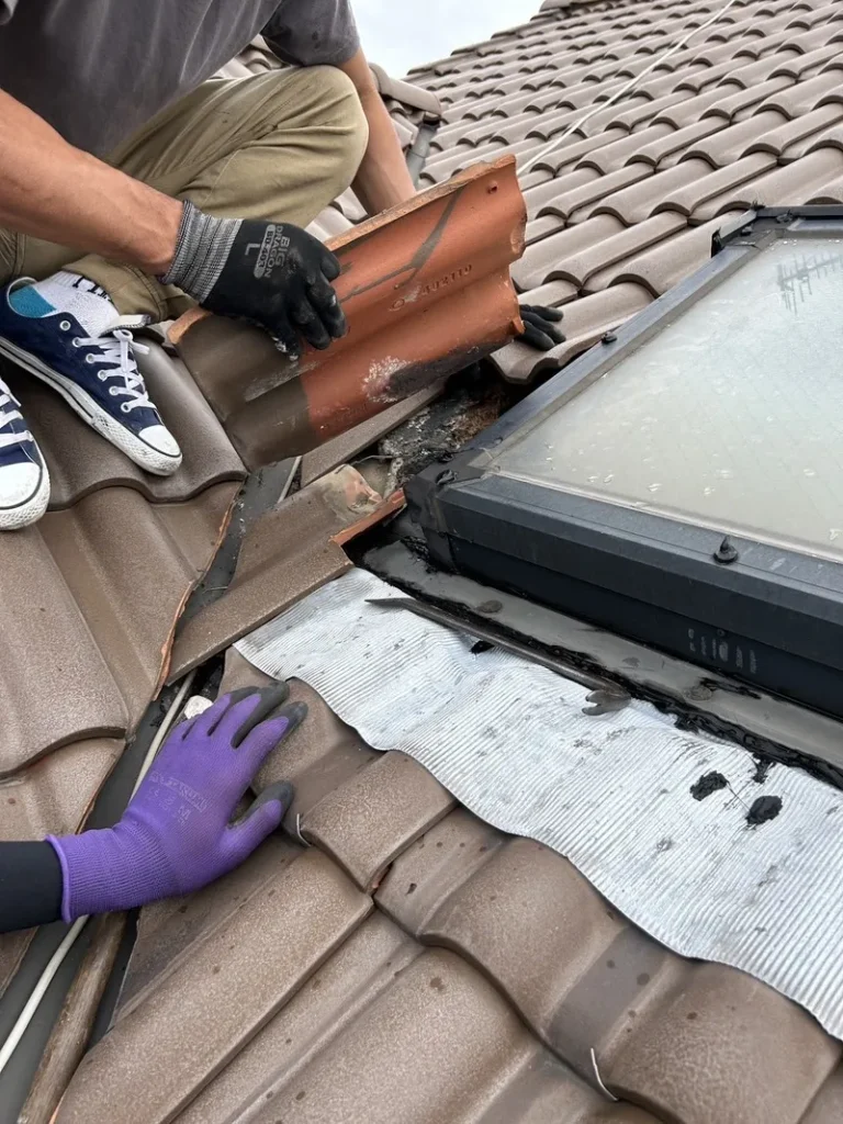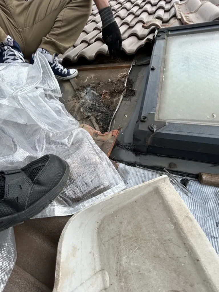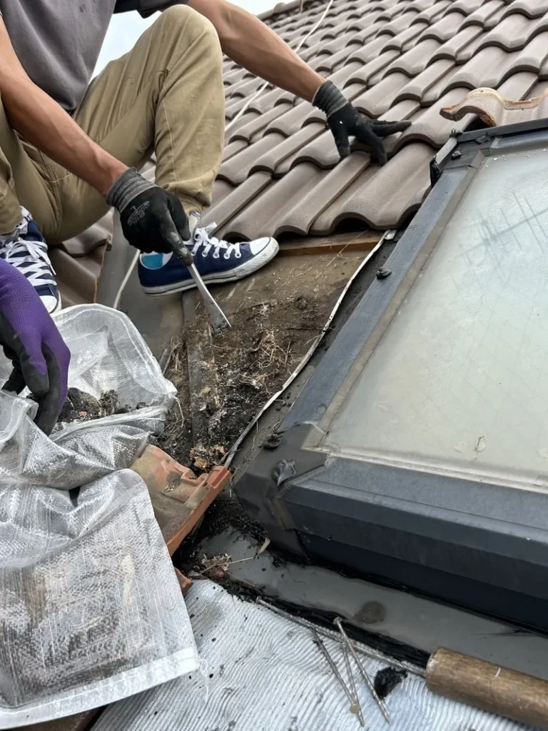 天窓(トップライト)が雨漏りの原因になっています。